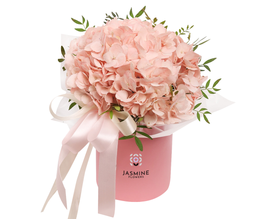 Aranjamentul floral în cutie cu hortensie și verdeață decorativă este o alegere elegantă și rafinată, ideală pentru a transmite un mesaj delicat și plin de bun gust. Hortensia, floare simbol al recunoștinței, armoniei și eleganței, este pusă în valoare de verdeața atent aleasă, care adaugă volum și prospețime aranjamentului.