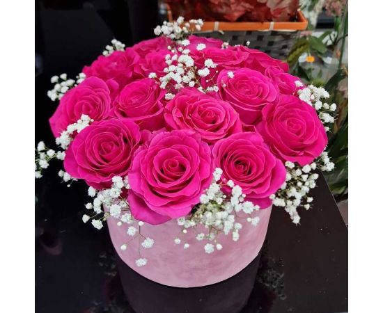 Un aranjament romantic și rafinat, perfect pentru a transmite afecțiune, delicatețe și admirație. Cutia elegantă adăpostește 21 de trandafiri roz proaspeți, simbol al iubirii blânde, al grației și al recunoștinței. Nuanța dulce de roz adaugă un aer sofisticat, transformând acest cadou într-o declarație de eleganță și sensibilitate.