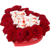 Aranjament floral in cutie cu 15 trandafiri Red Roses & Raffaello Love Box”