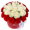 Aranjament floral in cutie cu 21 trandafiri "Heart of Love"