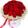Aranjament floral in cutie cu 21 trandafiri "Red Love"