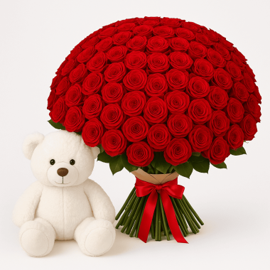 Buchet de flori cu 101 trandafiri rosii „101 Motive de Iubire”
