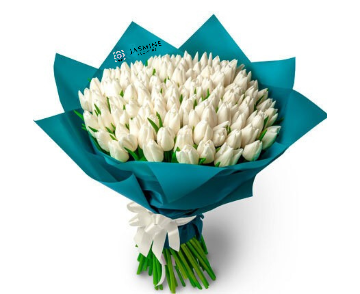 Buchetul cu 101 lalele albe este simbolul purității, eleganței și al respectului profund. Lalelele albe transmit sinceritate, pace și rafinament, iar numărul impresionant de flori transformă acest aranjament într-un gest spectaculos și memorabil. Este alegerea ideală pentru momente speciale în care vrei să exprimi emoții curate și autentice.