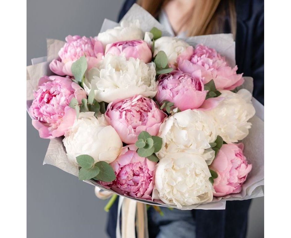 Flori incluse: 15 bujori roz si albi premium, atent selecționați