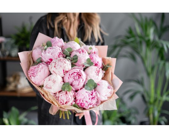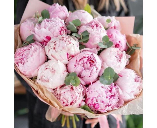 Un buchet spectaculos și rafinat, alcătuit din 15 bujori roz proaspeți, flori recunoscute pentru frumusețea lor romantică și parfumul delicat. Bujorii roz transmit afecțiune, eleganță și rafinament, fiind alegerea perfectă pentru a celebra iubirea, prietenia și momentele pline de emoție.