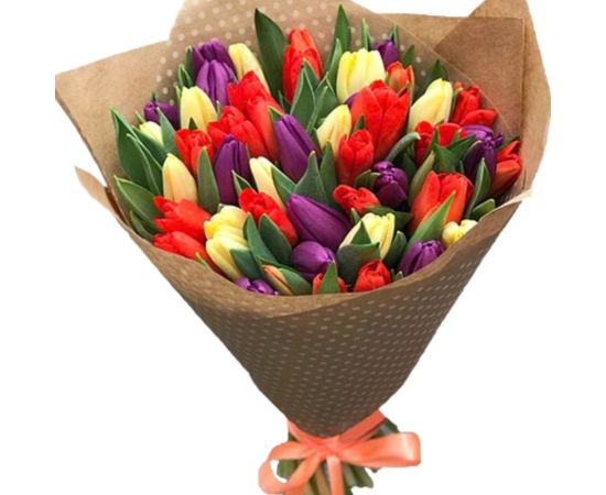 Buchet 25 lalele galben rosu mov