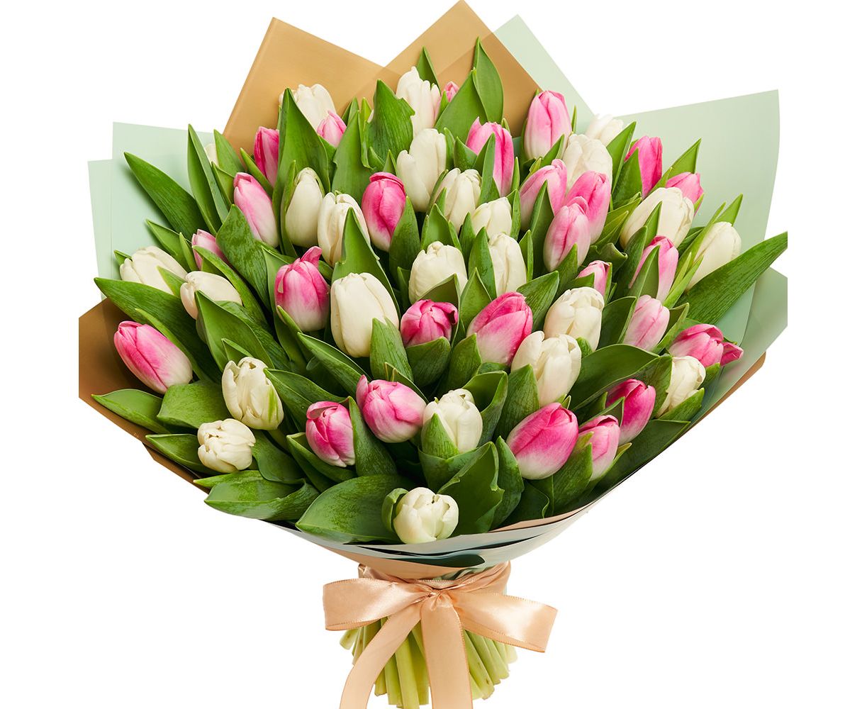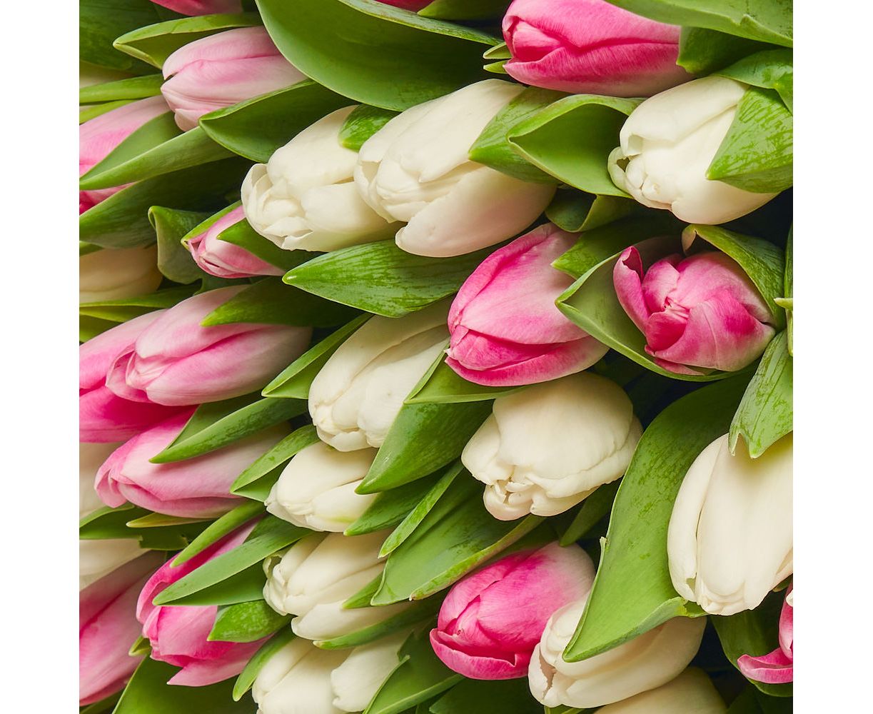 • 51 × lalele albe și roz, proaspete