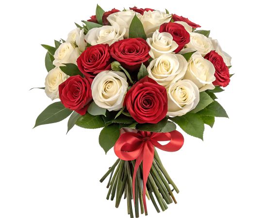 • Compoziție unică – 13 trandafiri albi și 12 trandafiri roșii, simbol al iubirii și pasiunii.