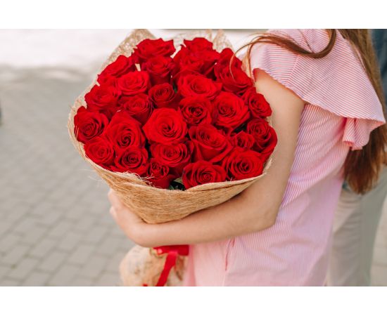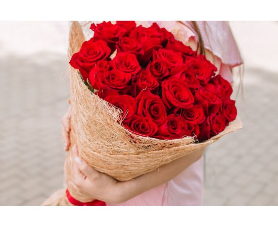 Buchetul de 25 trandafiri roșii este declarația supremă de dragoste și pasiune.