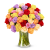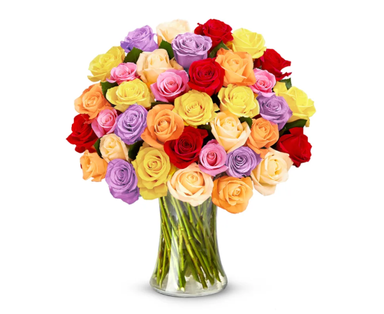 Buchet de flori cu 35 trandafiri multicolor si vaza