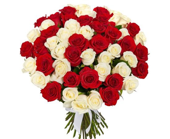 51 trandafiri proaspeți (roșii și albi, aranjați alternat)