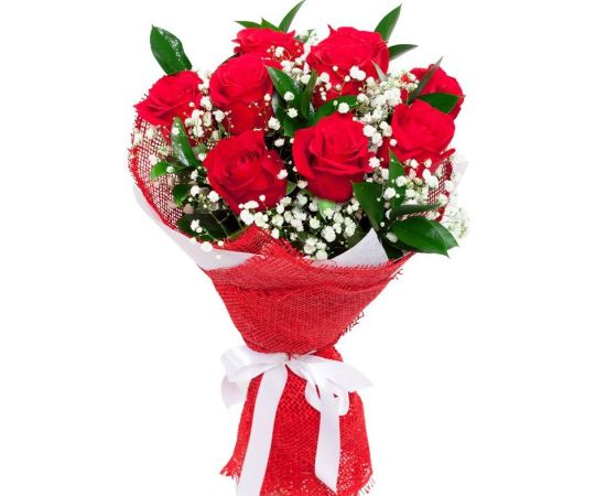 Buchetul cu 9 trandafiri roșii este un simbol al dragostei eterne și al pasiunii fără sfârșit.