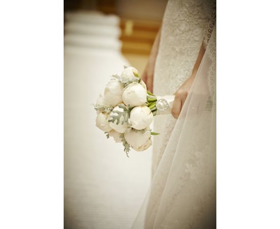 Un buchet sofisticat și romantic, creat pentru mireasa care își dorește un aranjament spectaculos, dar delicat, în ziua cea mare. Acest buchet impresionant conține 17 bujori albi, simbol al prosperității, iubirii sincere și începuturilor fericite, completat de frunzișul argintiu și catifelat de senecio cineraria, care adaugă textură și eleganță modernă.