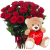 Buchet „Red Passion” cu 25 trandafiri si Ursuleț de plus