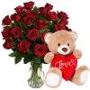 Buchet „Luxury Love Set” cu 25 trandafiri Vază si Ursulet de plus