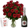 Buchet „Luxury Love Set” cu 25 trandafiri, Martini Asti, praline si vaza