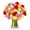 Buchet de flori cu 35 trandafiri multicolor si vaza