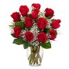 Un buchet de trandafiri roșii într-o vază transparentă, de exemplu, este o alegere clasică pentru a transmite pasiune și eleganță.
