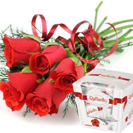 MarcaJasmine Flowers GamaBuchete, Buchete Trandafiri ColecțieBuchete cu dulciuri Ocazie1 și 8 Martie, Crăciun, Valentine's day, Ziua de naștere FloriTrandafir, Raffaello