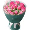 Buchet 10 Trandafiri Albi și 7 Lalele Roz