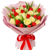 Buchet 13 Trandafiri Albi și 16 Lalele Roșii