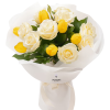 Buchet 9 Trandafiri Albi și 6 Lalele Galbene