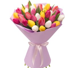 Buchetul cu 35 de lalele multicolore este o explozie de culoare și emoție, creat pentru a transmite bucurie, eleganță și sentimente sincere. Combinația armonioasă dintre lalelele roz, roșii, galbene și albe oferă un mesaj complet: afecțiune, iubire, optimism și puritate. Un buchet spectaculos,...
