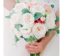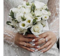 Buchet de mireasă cu trandafiri, lisianthus și eucalipt   Un buchet romantic și rafinat , creat pentru mireasa care visează la o nuntă elegantă și plină de naturalețe. Acest aranjament îmbină frumusețea clasică a trandafirilor cu delicatețea lisianthusului și prospețimea aerisită a...