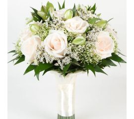 GamaBuchete mireasă FloriLisianthus (Eustoma), Trandafir CuloriAlb