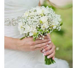 MarcaJasmine Flowers GamaBuchete mireasă FloriGypsophila, Frezie CuloriAlb