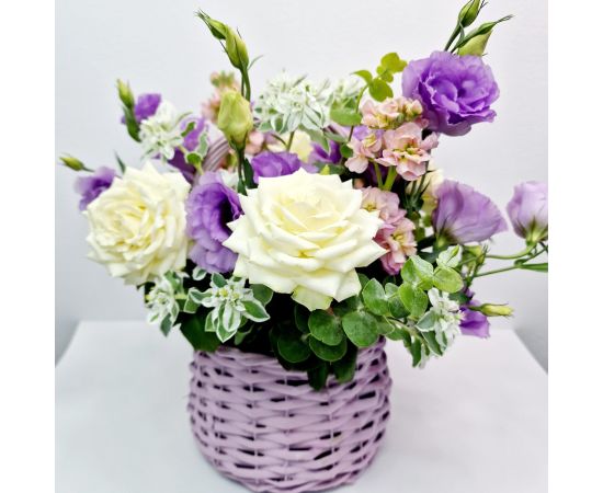 Cos cu aranjament floral „Grădina Viselor”