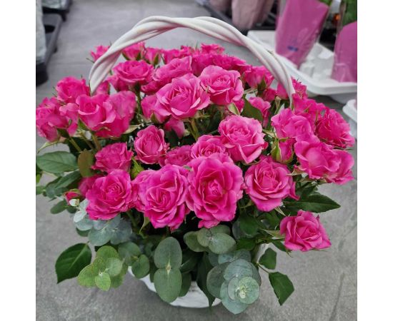 Coș cu flori – 11 Miniroze Roz