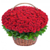 Cos cu flori La mulți ani cu 101 trandafiri rosii