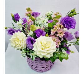 MarcaJasmine Flowers GamaCoșuri cu flori OcaziePaște, Valentine's day, 1 și 8 Martie, Ziua de naștere FloriLisianthus (Eustoma), Minirose CuloriMulticolor