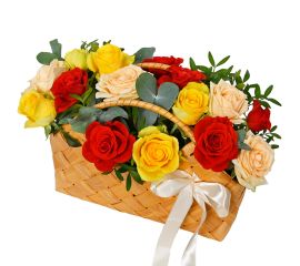 MarcaJasmine Flowers GamaCoșuri cu flori Ocazie1 și 8 Martie, Ziua de naștere, Paște FloriTrandafir CuloriMulticolor