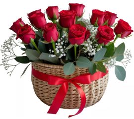 Coșul „La mulți ani” cu 11 trandafiri roșii, 4 fire de gypsophila și 5 fire de ruscus este un aranjament floral elegant și festiv, creat pentru momentele în care vrei să transmiți dragoste, recunoștință sau admirație. Trandafirii roșii simbolizează pasiunea și respectul profund, gypsophila...