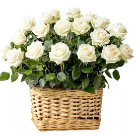 MarcaJasmine Flowers GamaCoșuri cu flori OcazieCorporate, Paște, Nuntă sau cununie civilă, 1 și 8 Martie, Valentine's day, Ziua de naștere, Crăciun și revelion FloriTrandafir CuloriAlb