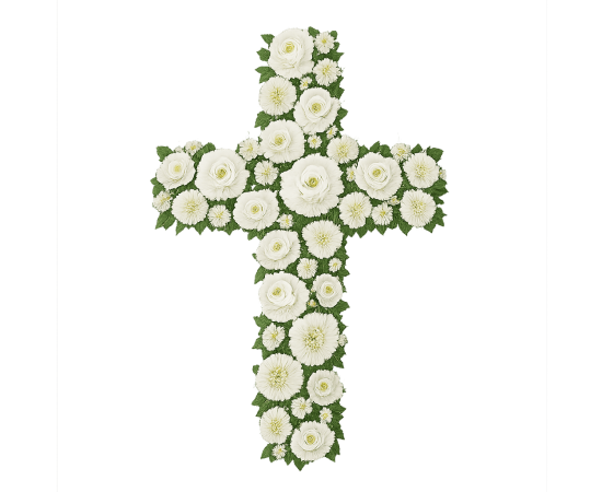 Cruce funerara de flori 70cm inima – Calitate Premium Alb