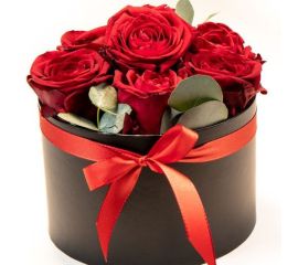 Aranjament floral în cutie – 7 trandafiri roșii Un aranjament floral în cutie cu 7 trandafiri roșii este cadoul care îmbină eleganța și romantismul într-o prezentare rafinată. Cutia elegantă și trandafirii roșii, simboluri ale iubirii, formează împreună un dar premium, potrivit pentru...