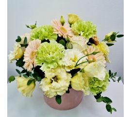 MarcaJasmine Flowers GamaBuchete ColecțieMulticolor FloriTrandafir, Minirose, Lisianthus (Eustoma), Green Ball Dianthus CuloriMulticolor