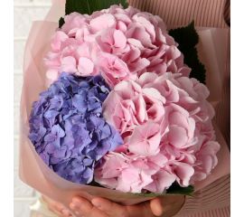 Buchet de flori cu 3 hortensii (2 roz și 1 mov) Un buchet delicat și sofisticat , alcătuit din 3 hortensii proaspete – 2 în nuanțe romantice de roz și 1 mov intens , ce creează un contrast subtil și elegant. Textura bogată a hortensiilor și paleta de culori pastelate transmit un mesaj de...