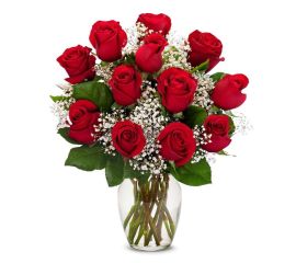 Buchet cu 15 trandafiri cu Gypsophila si vaza