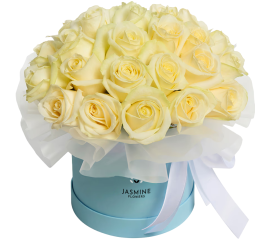 Buchet cu 35 trandafiri cu Gypsophila si vaza