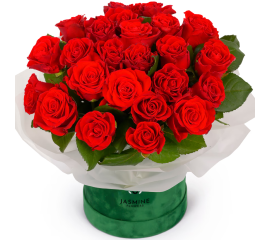 Aranjament floral în cutie 25 trandafiri "Royal Red Box"
