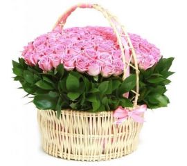 Cos cu flori La mulți ani cu 251 trandafiri roz