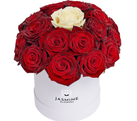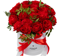 Aranjament floral in cutie cu 17 trandafiri "Passion Roses"