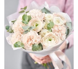 Buchet de flori cu trandafiri, garoafe, craspedia și eucalipt – Eleganță cu accente solare Acest buchet spectaculos este o veritabilă expresie a eleganței moderne, combinând 19 trandafiri proaspeți , simbol al iubirii profunde, cu 5 garoafe (dianthus) pline de grație, 5 flori de...