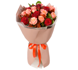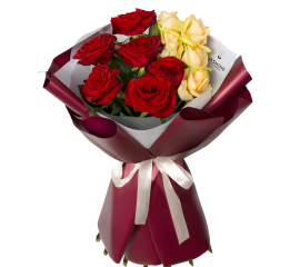 Buchet cu 11 trandafiri „Îmbrățișare în Roșu și Galben”