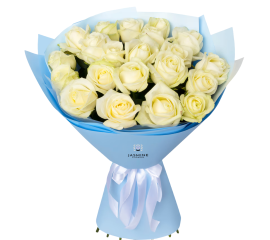 Buchet cu 21 trandafiri „Eleganță Albă”