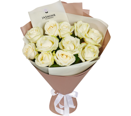 Buchet cu 11 Trandafiri Albi în Ambalaj Craft